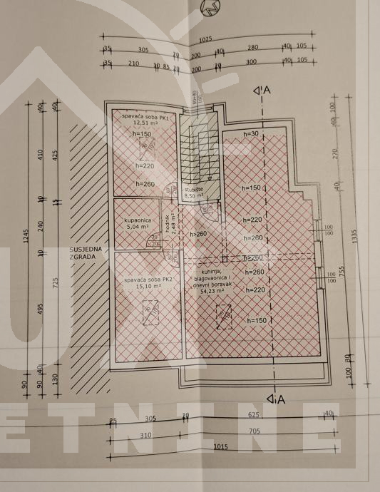 It also has a storage room in the basement (area 3.85 m2), and two parking spaces in the building's yard (area 22.01 m2).