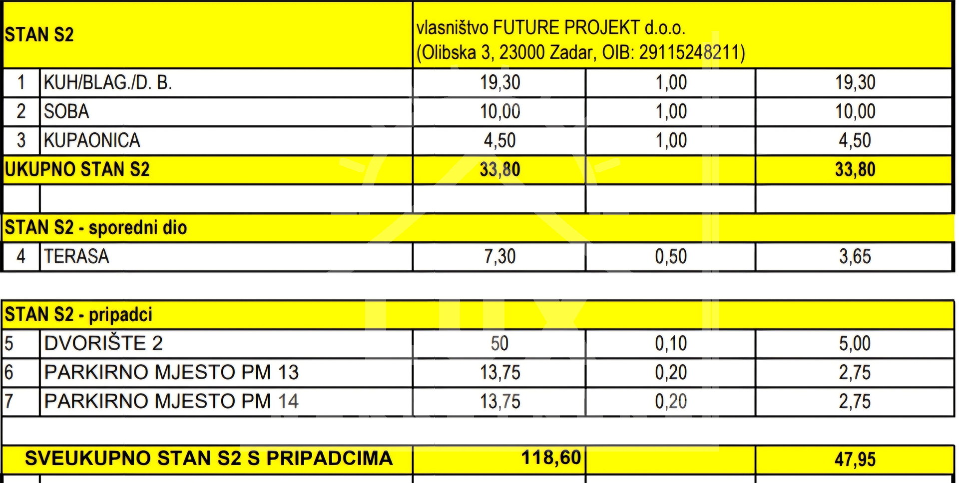 The apartment also has a garden (area 50 m2) and two parking spaces PM13 and PM14 in the building's yard (area 13.75 m2 and 13.75 m2).
