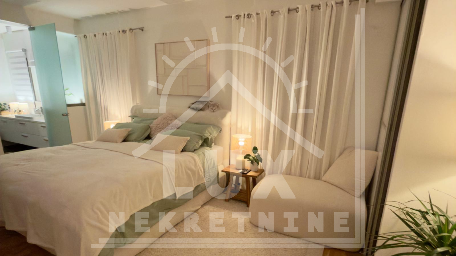 Orijentiran ne na ZAPAD – JUGOZAPAD, osunčan, te obiluje prirodnim svijetlom zahvaljujući velikim staklenim stijenama i stropnim prozorima s daljinski upravljivim sustavom zatamnjenja.