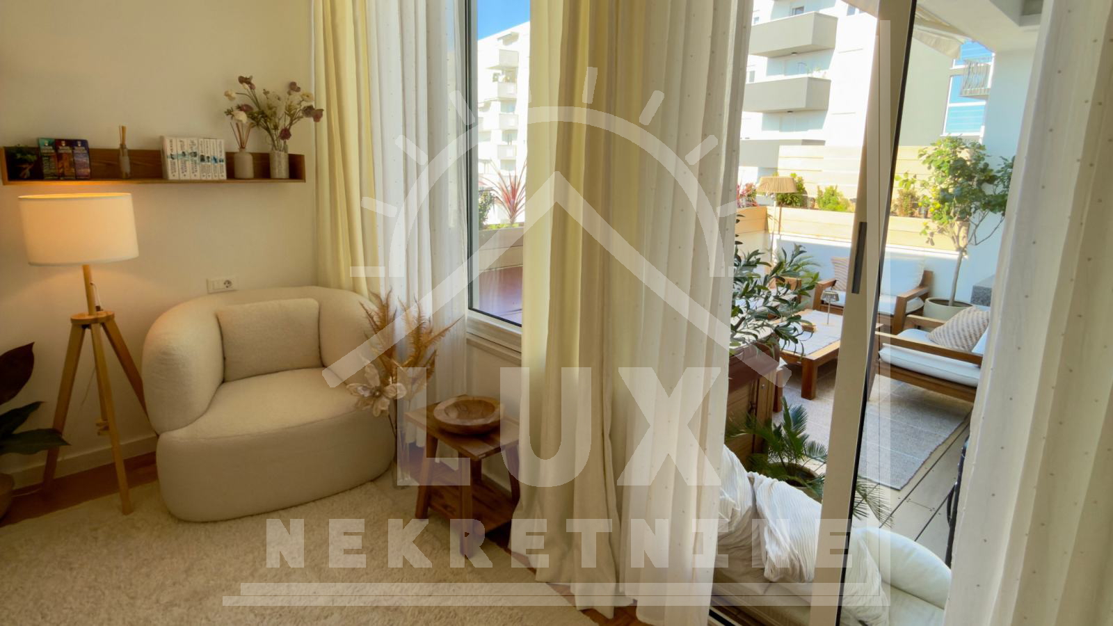 Nalazi se u manjoj stambenoj zgradi iz 2010. god, a stan je nanovo renoviran/uređen 2025. god. Smješten je na 2. (zadnjem) katu. Stan ima unutrašnjeg prostora 155.91 m2 i dvije natkrivene terase pov. 10.60 m2 i 11.13 m2.