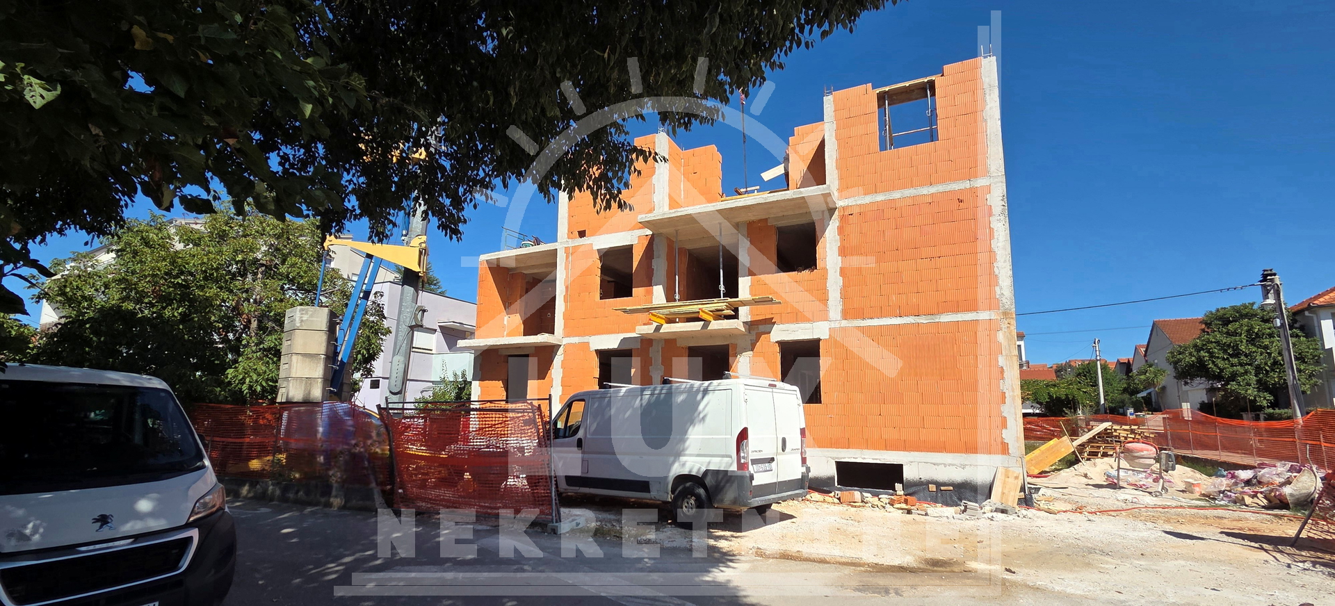 Manjša stanovanjska stavba z 9 stanovanjskimi enotami, Zadar (Borik) NOVOGRADNJA. Sestavljena je iz kleti, pritličja in dveh nadstropij. Stavba je zgrajena iz najkakovostnejših materialov (10 cm debela fasada - pričakovani energijski razred A+, protivlomna in protipožarna vhodna vrata v stanovanja, PVC zunanje stavbno pohištvo z mrežami proti komarjem in električnimi roletami, električno talno ogrevanje po celotnem stanovanju, kopalne kadi v kopalnicah, steklene ograje na balkonih, video domofon pri vhodu v stavbo). Kupec lahko izbere keramična ali parketna tla. Vsako stanovanje ima svojo shrambo v kleti stavbe in eno zunanje parkirno mesto. Stavba bo priključena na mestni kanalizacijski sistem.